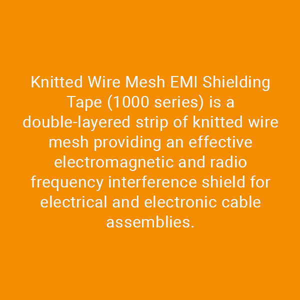 Knitted Wire Mesh EMI Shielding Tape (1000 series) is a double-layered strip of knitted wire mesh providing an effective electromagnetic and radio frequency interference shield for electrical and electronic cable assemblies.